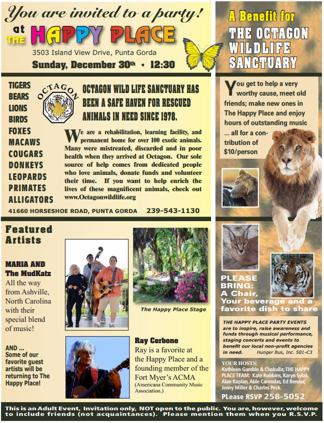 Fundraiser Concert: “Party with a Purpose”! Advanced Auto on 1183 N. Toledo Blade Blvd. in North Port, Florida is teaming up with the Hunger Bus having a Party to Benefit: the All Faiths Food Bank! Burgers, Dogs, Sodas and Water all for a dollar donation each. Bouncy House, Rock Painting, Prizes and Give aways. Family Fun and celebration! Chakulla will be making Music throughout afternoon! This Event is FREE! Monetary and non-perishable Donations excepted! Help Feed Hungry Children/People!