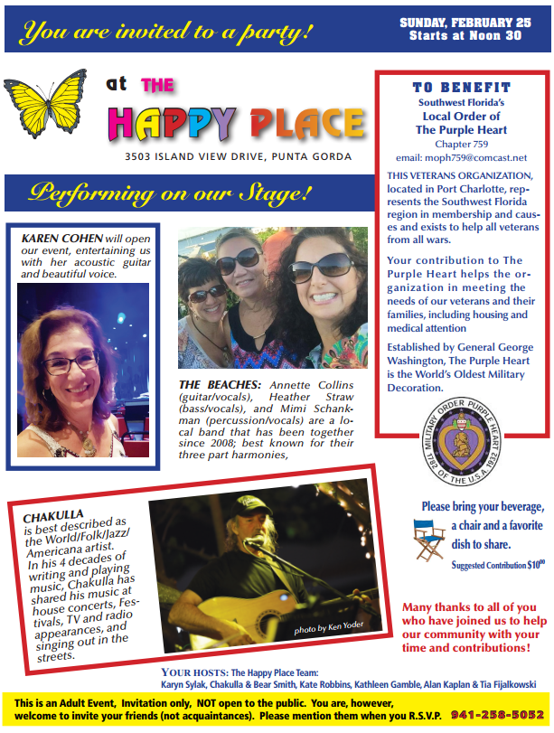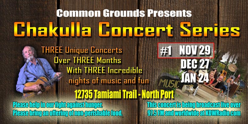 Chakulla returns to the Common Grounds for a first-ever, three-concert series performed over three successive months. Common Grounds Meeting Hall 12735 Tamiami Trail North Port, FL 34287