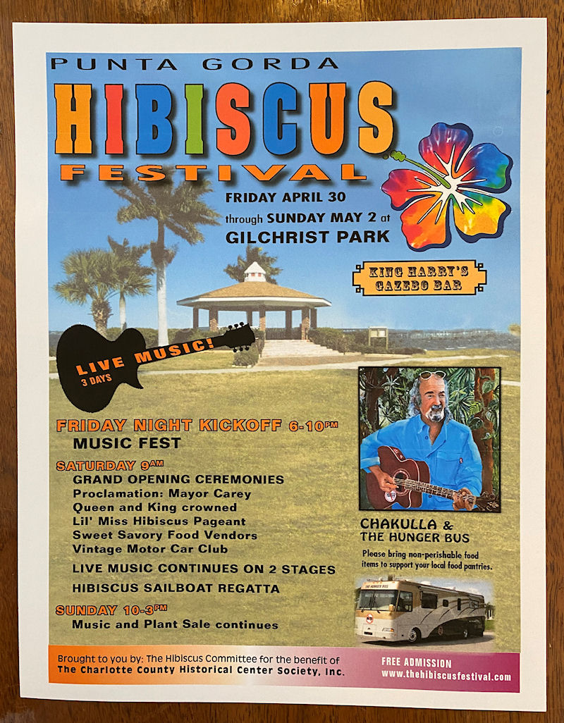 April 10th 1-6:30pm Chakulla will be adding percussion/vocals with “Mike Hayman’s and the Hibiscus Band” Please bring non-perishable Food items! Thank you and looking forward, Chakulla